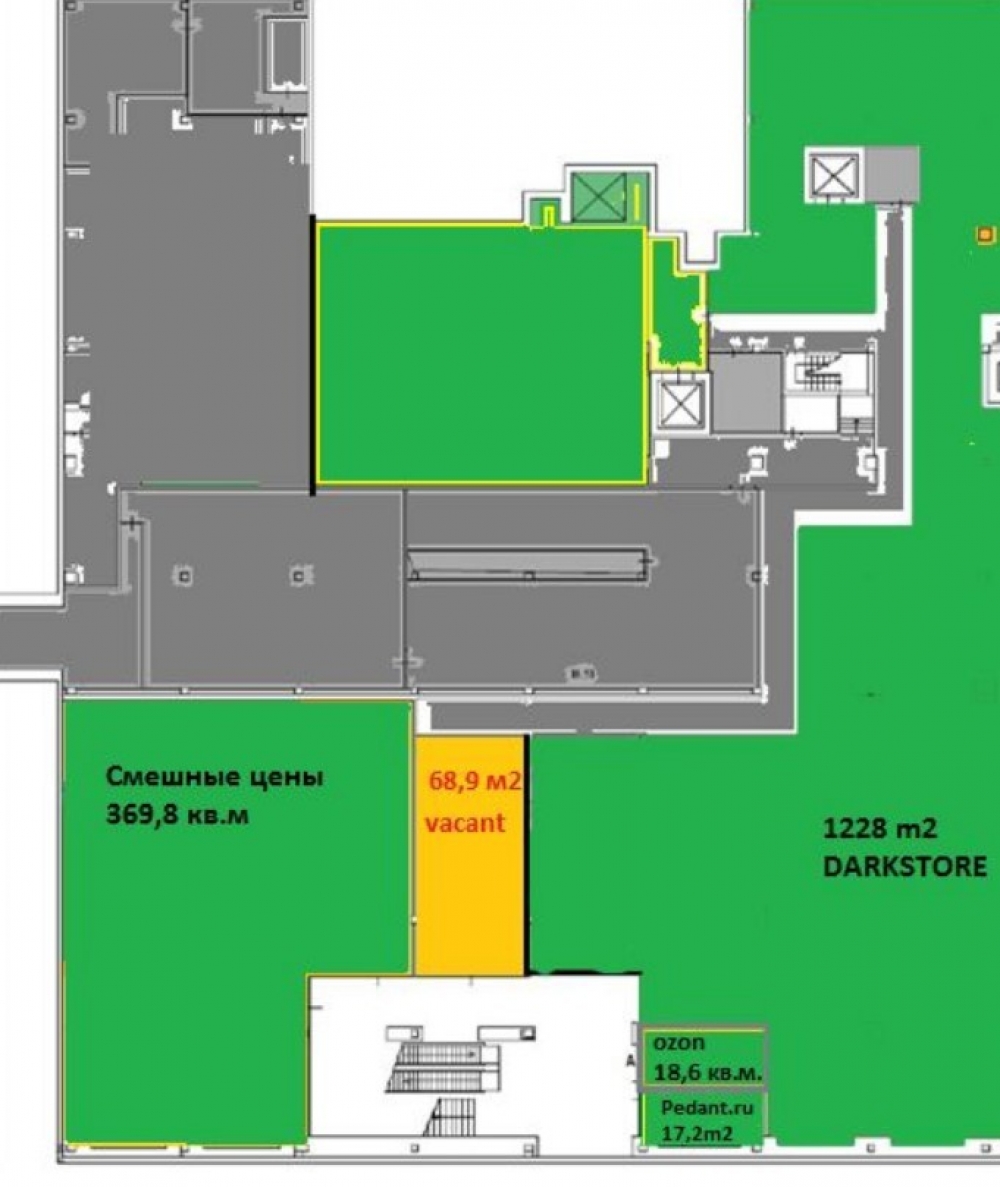 Зона разгрузки,Ресторанная вытяжка,Торговый центр,Витрины,Место для рекламы,Проходное место,Проездное место