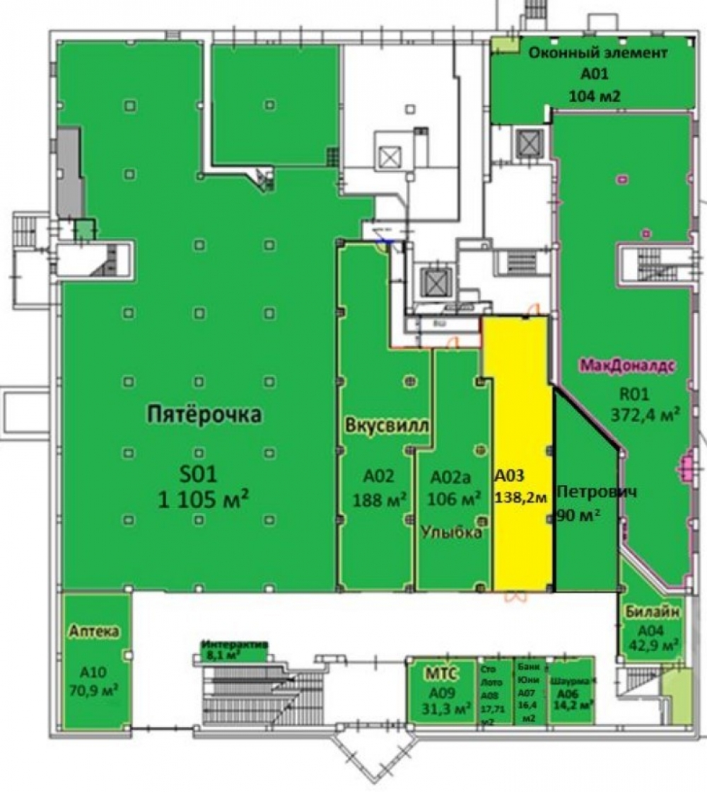 Арендаторы: Пятёрочка, Вкусно и Точка, Фамилия, BetBoom, Билайн, МТС, Ригла