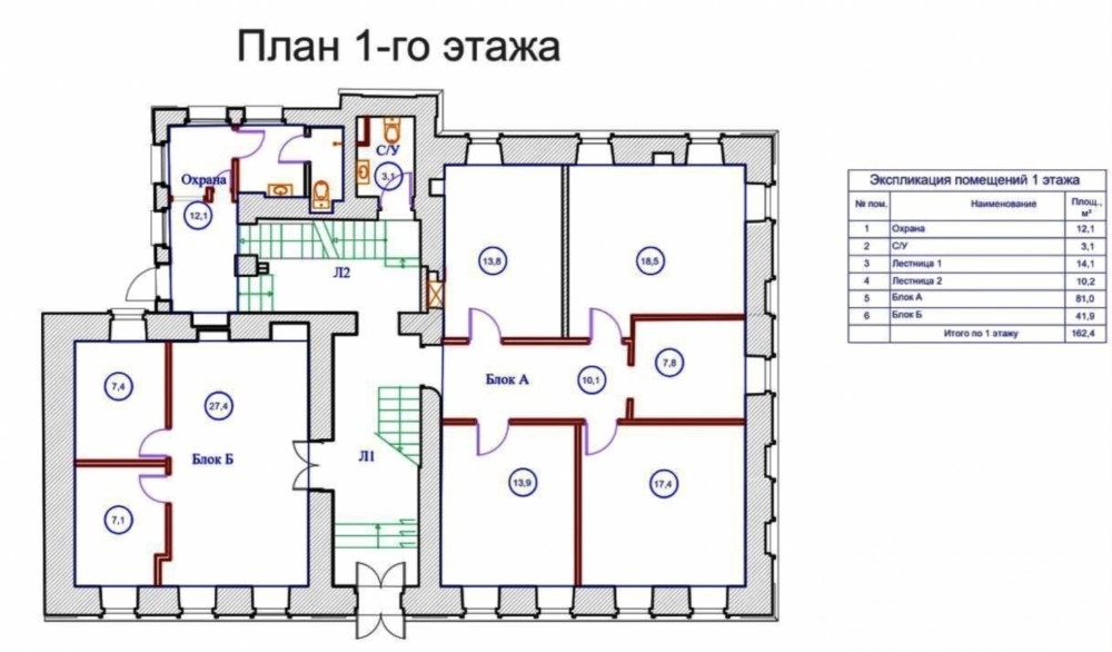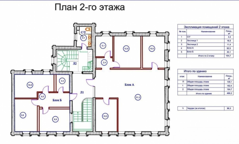 Общая площадью 466,2м2, два этажа, подвал и небольшой чердак. Недавно закончен косметический ремонт. Здание оборудовано системой кондиционирования, приточной вентиляции и видеонаблюдения. Выделенная мощность - 100 кВт.