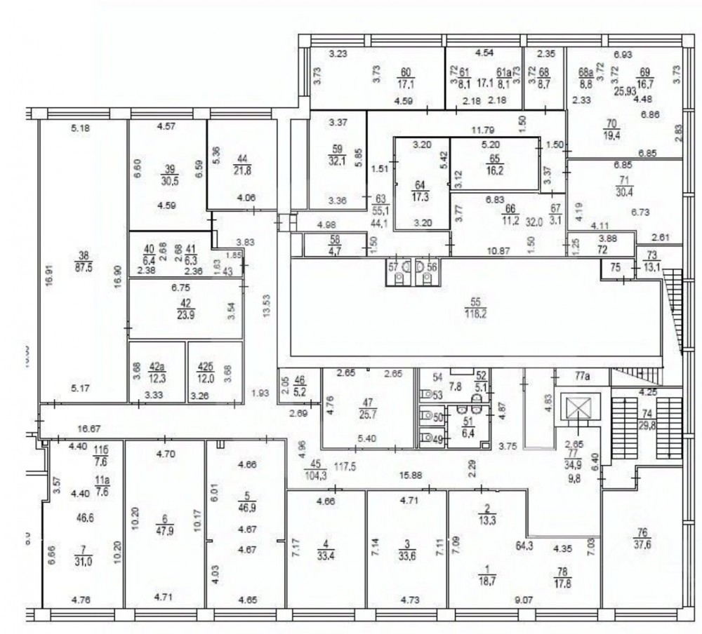 Строение 23, офис расположен на 5-м этаже, стандартный офисный ремонт за выездом арендатора, смешанная планировка, приточно-вытяжная вентиляция, кондиционирование.