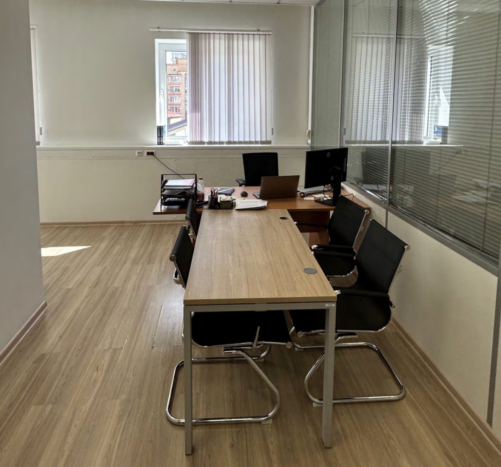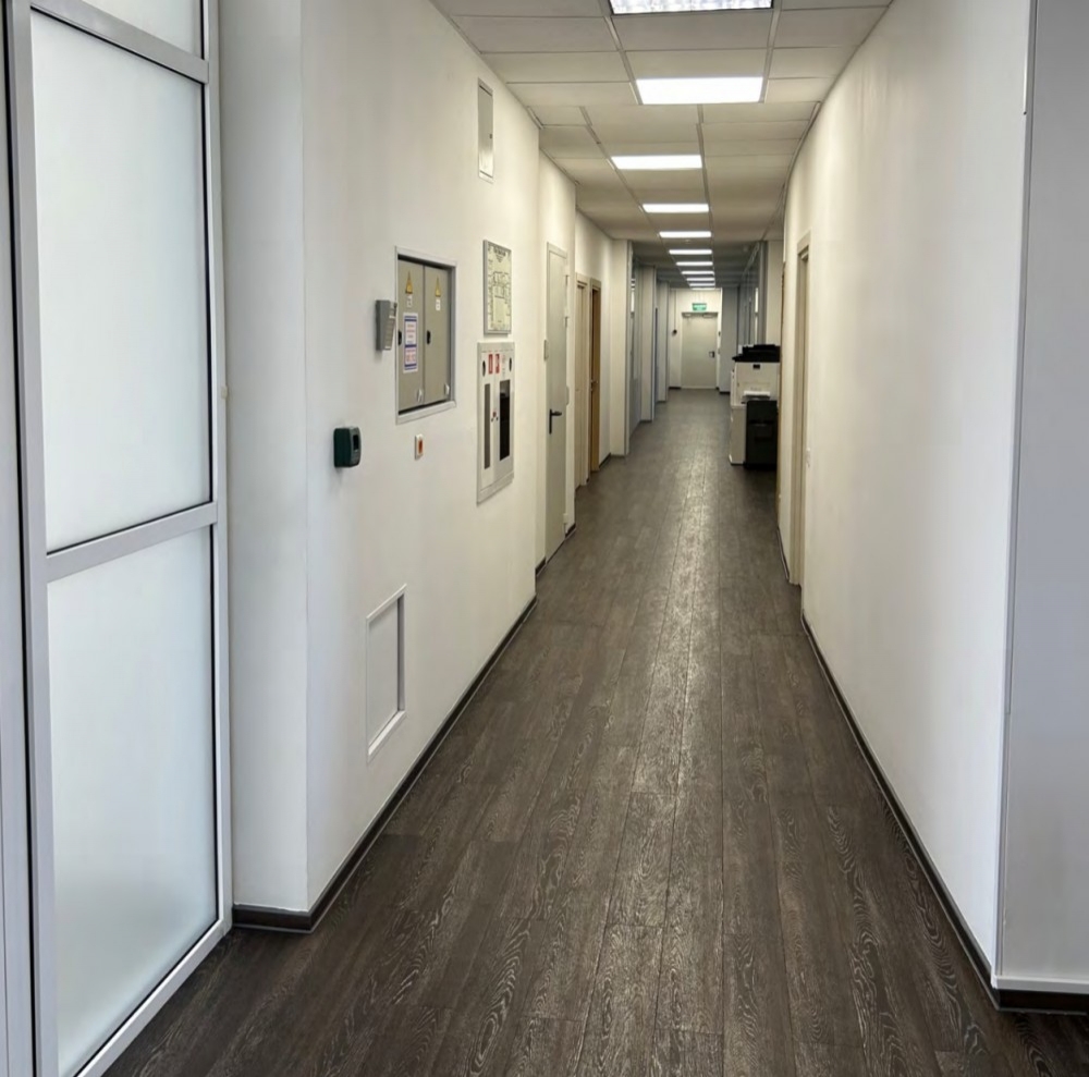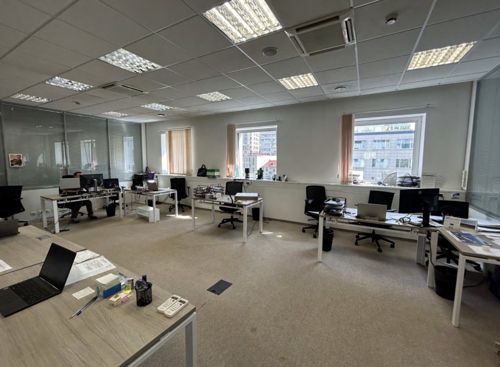 Офис занимает весь 5 этаж, большие окна по периметру, качественный ремонт, высокие потолки. Установлены сиссемы приточно-вытяжной вентиляции и кондиционирования.