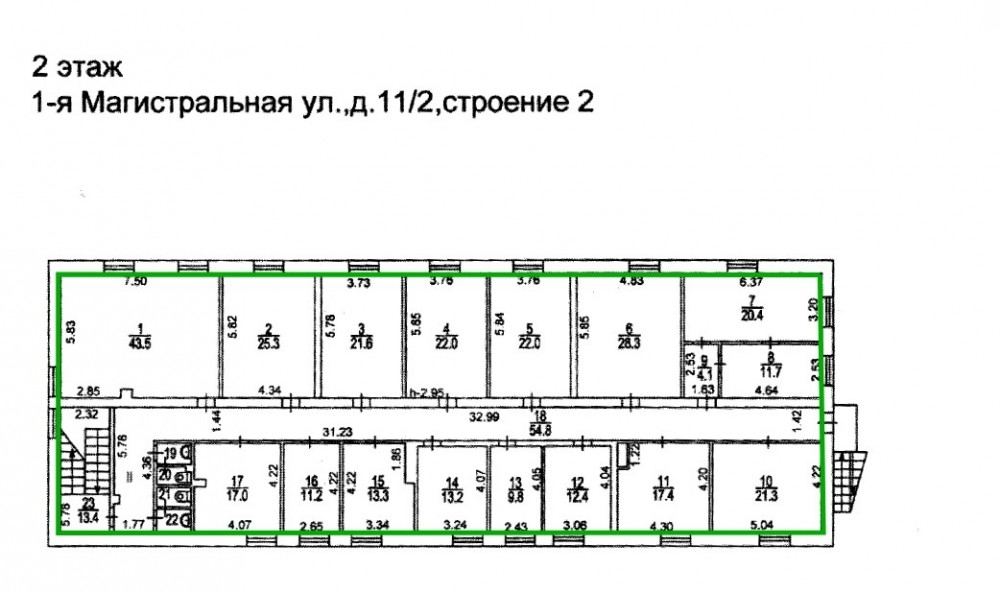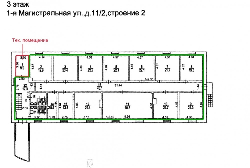 Предлагается в аренду офисный комплекс на ул. Магистральная, Хорошевский район, 1-я Магистральная улица, д. 11/2, строения 1-3. Офисный комплекс, состоящий 3-х строений, объединѐнных между собой. Этажность – 3 этажа; год реновации – 2007. Площадь Помещений – 3 214,8 кв.м. Общая площадь Строения 1 – 1 843,7 кв.м. Общая площадь Строения 2 – 1 120 кв.м. Общая площадь Строения 3 – 251,1 кв.м. Кабинетная планировка. Состояние помещений – с отделкой (за выездом арендатора). Наземная парковка на 50 м/м с возможностью увеличения. Профессиональная управляющая компания. Центральная система приточно-вытяжной вентиляции. Кондиционирование – сплит-системы. Охраняемая территория и система контроля доступа. Установленная мощность 600 кВт. Операторы связи Ростелеком и МГТС. Возможность заведения другого провайдера.