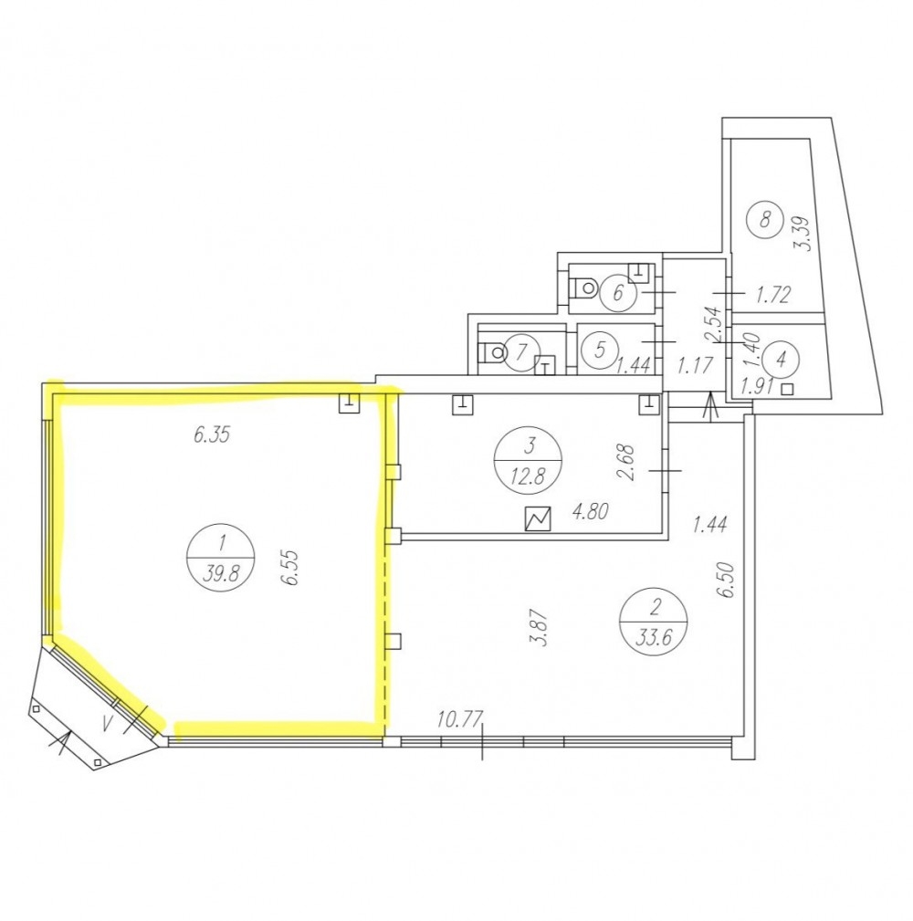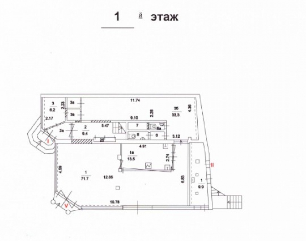 Помещение площадью 39кв.м расположено на 1 этаже встроено-пристроенной части нежилого 2-х этажного здания.