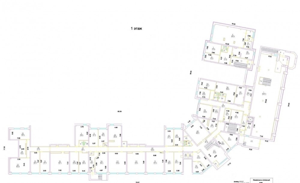 Первый этаж - 30 помещений кабинетного типа с потолком 3,7м. Возможно создать места для хранения на антресольных полках. Помещения можно объединить в блоки, при необходимости снести ненесущие перегородки. Есть 4 входа с улицы. На первом этаже пристройки имеется большое помещение 300 м2 с витринными окнами и отдельным входом с улицы, с двумя лестницами в подвальную часть (помещение можно разделить на блоки ненесущими перегородками), с доступом через гараж и лифтом в подвал.