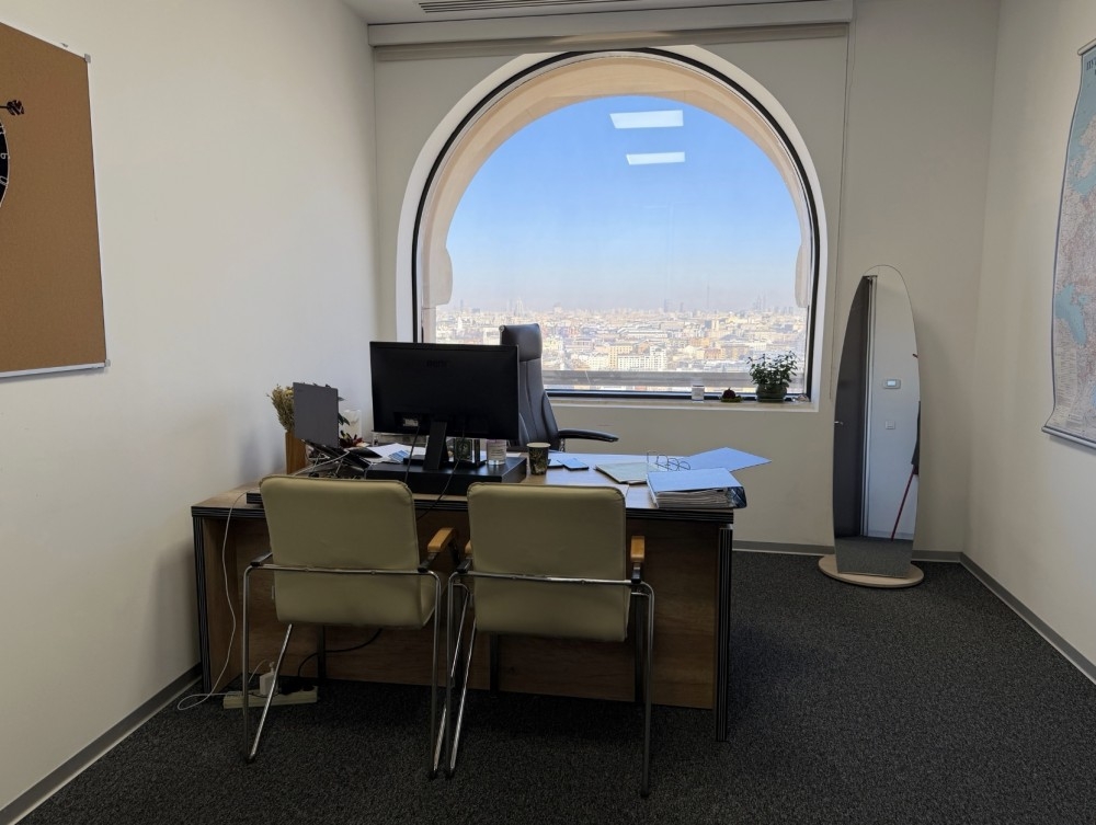 Офис расположен на 26-м этаже, смешанная планировка, свои с/у, высококачественная отделка за выездом арендатора. В здании приточная вентиляция, центральное кондиционирование.