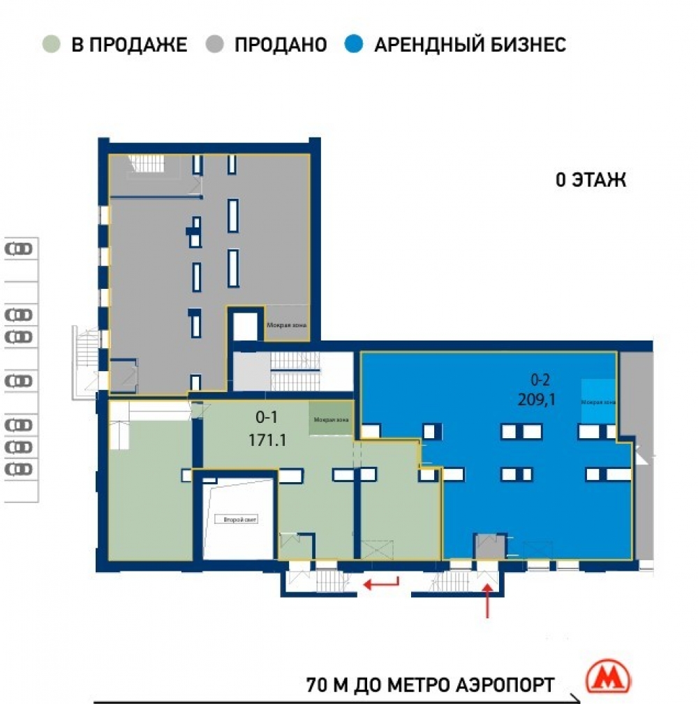 Удобное расположение, 7 минут пешком от станции метро Аэропорт, 10 минут на автомобиле до ТТК.