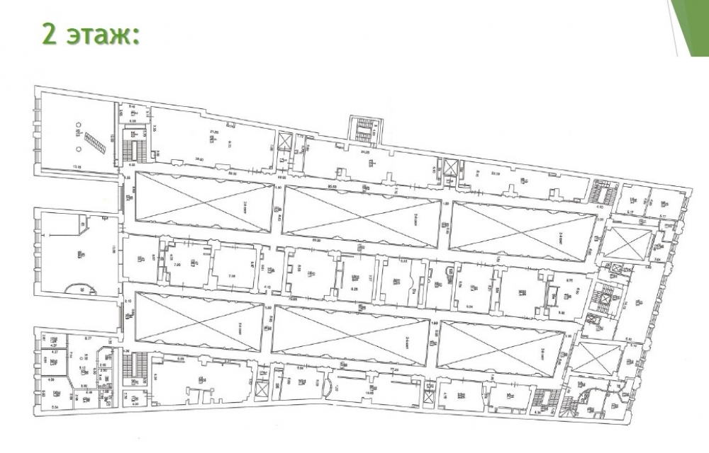 Помещения в прекрасном состоянии, с полностью исправными коммуникациями, вентиляцией, кондиционированием, лифтами и прочим. Есть зона разгрузки-погрузки с дебаркадером.