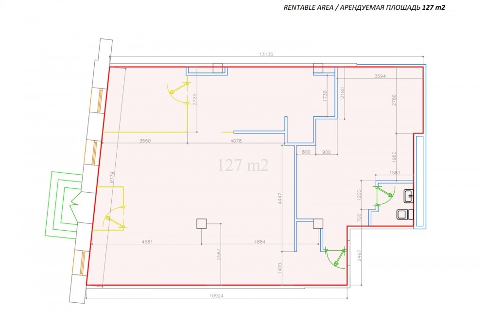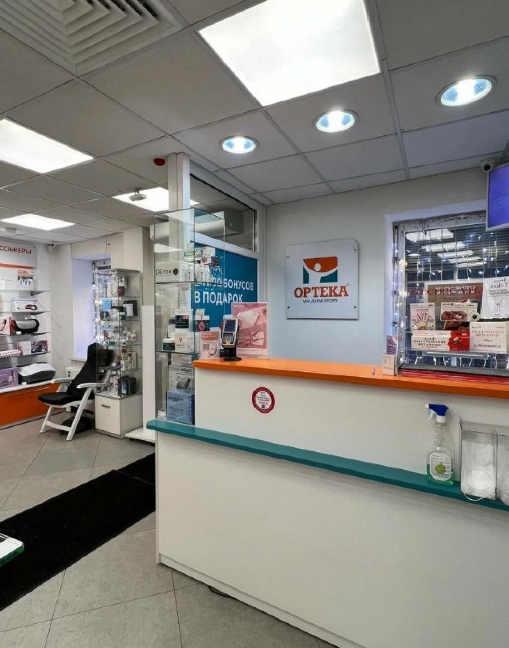 Первая линия, первый этаж. За помещением здание бизнес-центра.