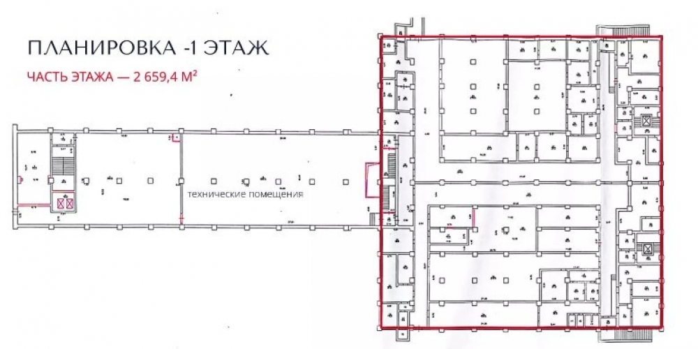 Помещение находятся на -1 этаже ( часть этажа) общей площадью 2 659,4 м2.