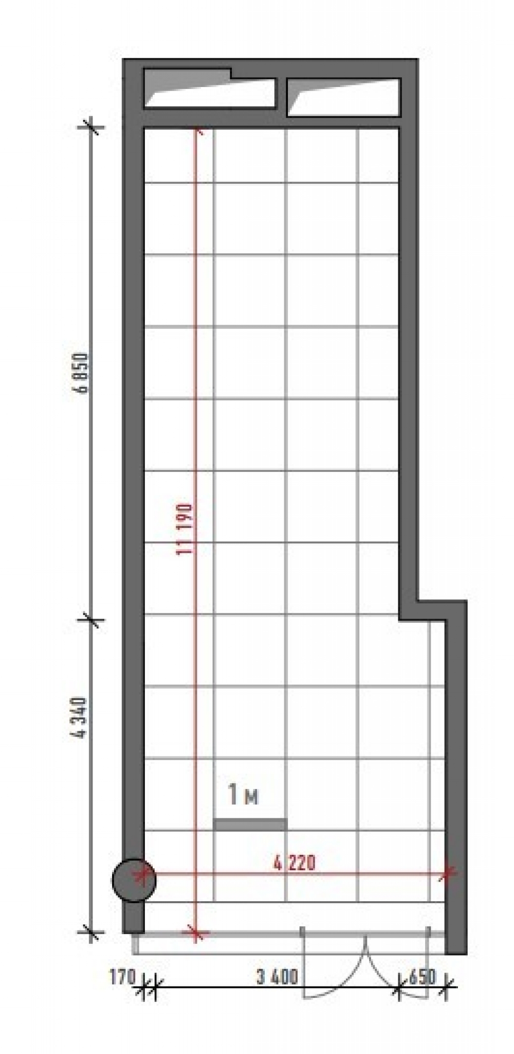 Помещение на 1 этаже общей площадью 42,50 м2. Панорамные окна в пол, высота потолков 6,5 метров.
