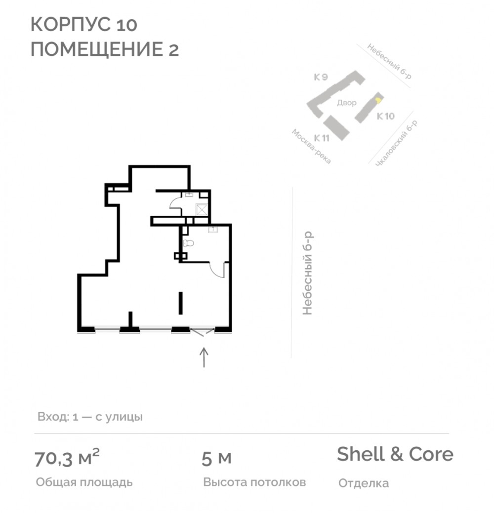 Корпус 10 располагается вдоль зоны пешеходных потоков.