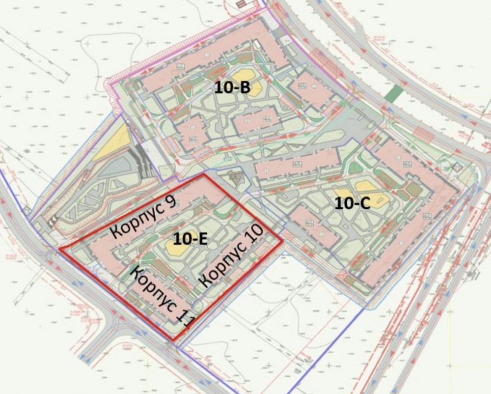 Корпус 10 располагается вдоль зоны пешеходных потоков.