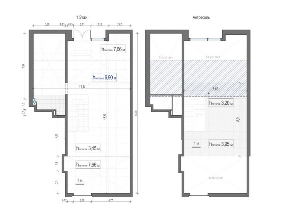 Time на Пресне. 1 уровень - 187,8 кв. м с высотой потолка 3,45 м., 2 уровень - 56,6 кв. м. с
