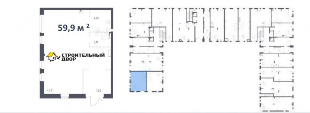Предлагается в продажу помещение в ЖК " Квартал Западный". Помещение находится в корпусе 2 общей площадью 59,90м2 на 1 этаже. Угловое помещение в торце корпуса, напротив паркинг.