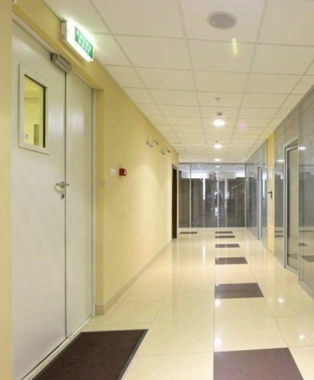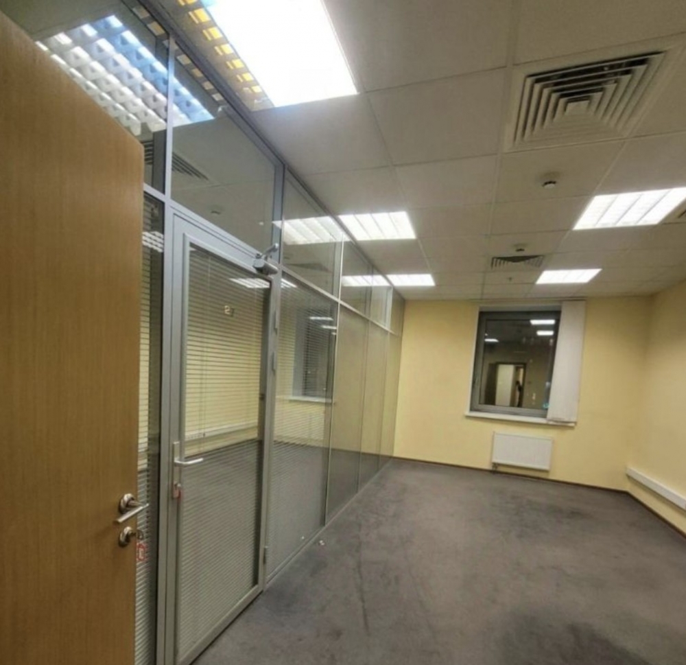 Занимает половину этажа, общая площадь 665м2. Этаж поделен на кабинеты. Отделка за выездом арендатора: подвесные потолки, фальшпол, стены оклеены обоями, покрашены, свои с/у. Возможны каникулы на ремонт.