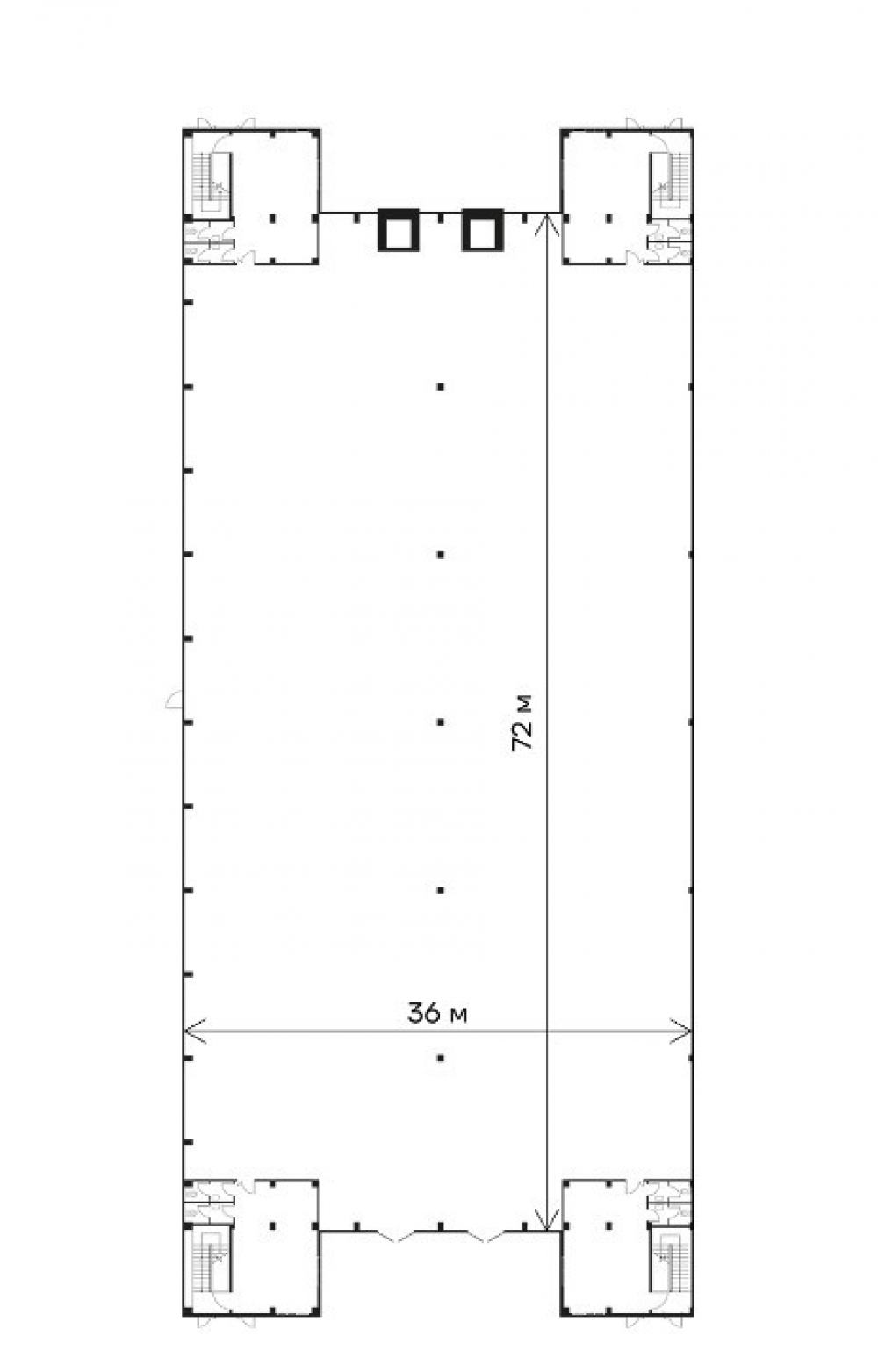 Рабочая высота потолков - 8 м. Шаг колонн 12х18 м.