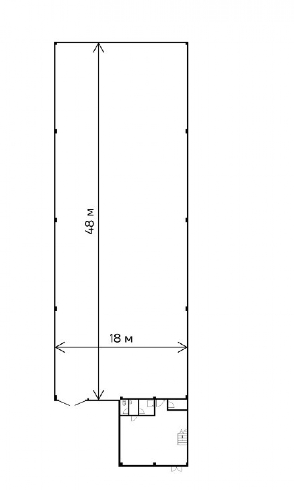 Рабочая высота потолков - 8 м. Шаг колонн 12х18 м.