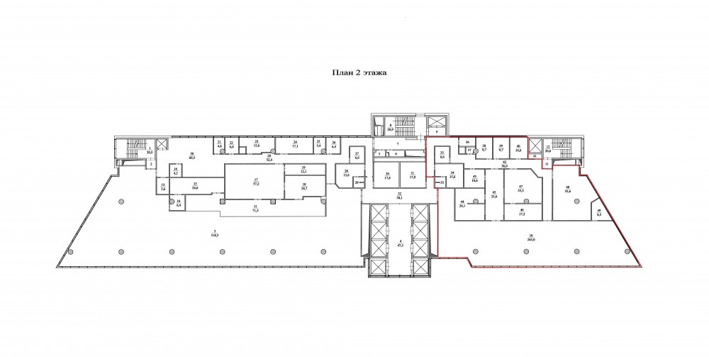 Предлагается в аренду помещение свободного назначения (офис/шоу-рум/общепит) на 2 этаже бизнес-центра «KHIMKI ONE».