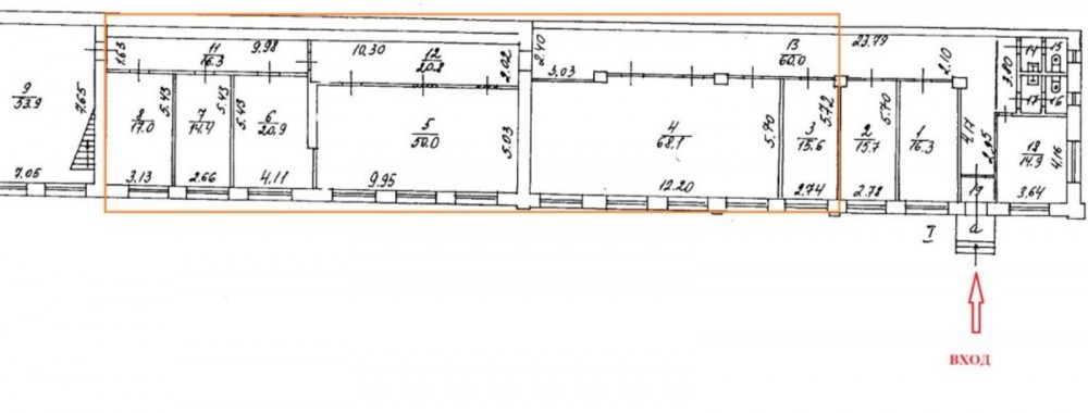 Предлагаем в аренду офисный блок в пешей доступности от м. Площадь Ильича. Одноэтажное здание, коридорное-кабинетная планировка, с/у общие, стандартный ремонт (стены под подкраску, пол линолеум), потолки 2,7м. Есть 1 м/м за 8500р/мес. Только под офис.