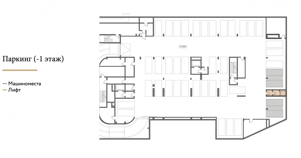 - Машиноместа в подземном паркинге: 4 шт. (от 16,7 до 21,6 м²)