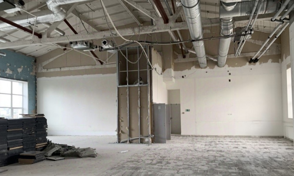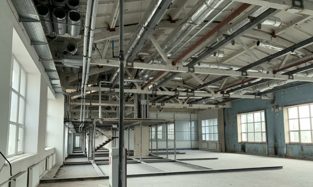 Четвертый этаж, свободная планировка open-space 880м2 с антресолью 200м2, стены - бетон, большие окна. В здании приточно-вытяжная вентиляция, центральное кондиционирование, круглосуточный доступ, пропускной режим. Сдается только под офис/фотостудию. Раньше располагалась студия офисы ТВ-Радио компании.