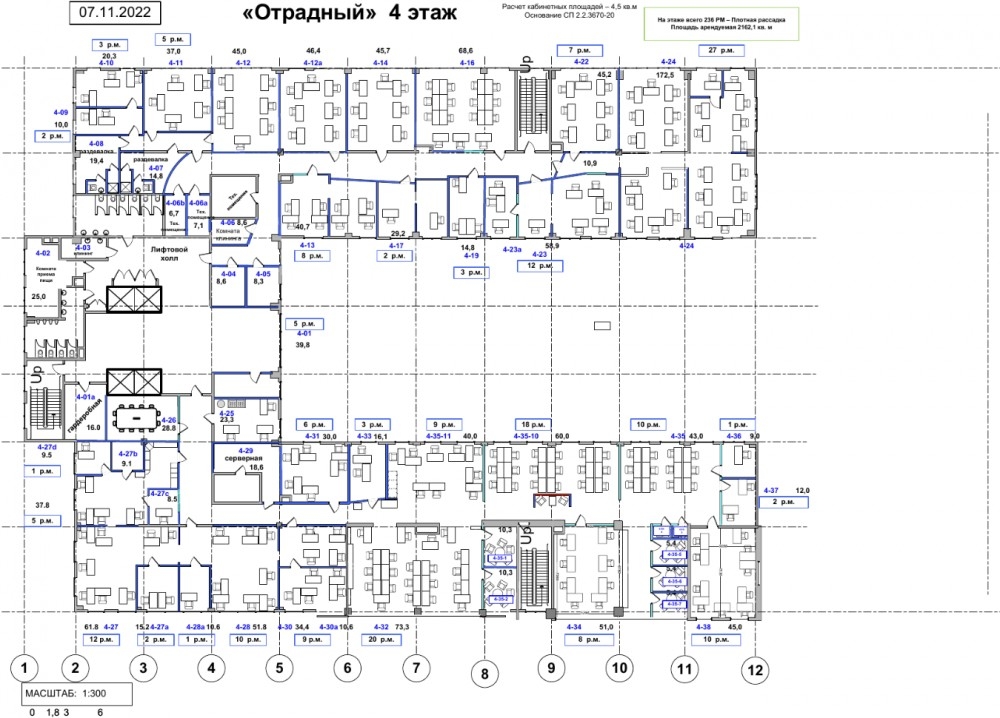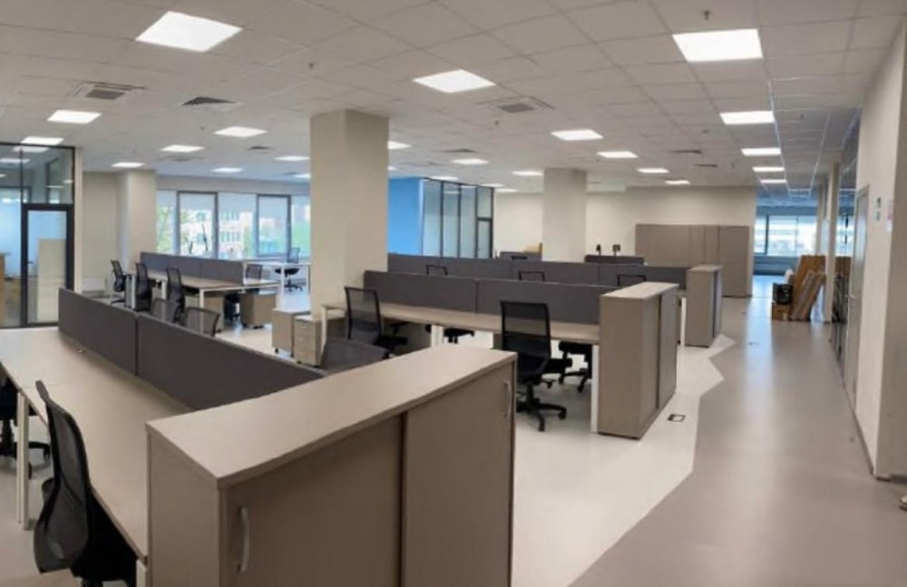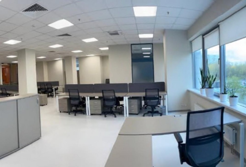 Офис занимает весь этаж, смешанная планировка (блок помещений на 263 рабочих места состоит из зоны open-space, нескольких кабинетов, кухни), отделка за выездом арендатора.