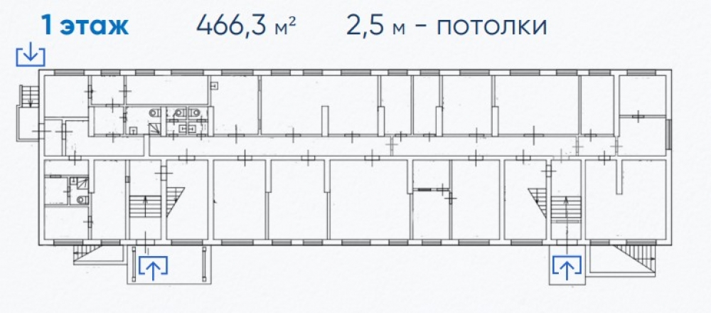 Трехэтажное здание, 3 входа на 1й этаж, два входа в подвал.