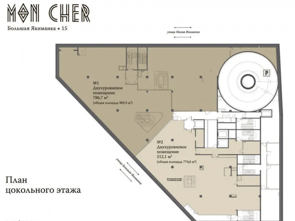 Первый этаж 182,6м2 и подвал 786,7м2.