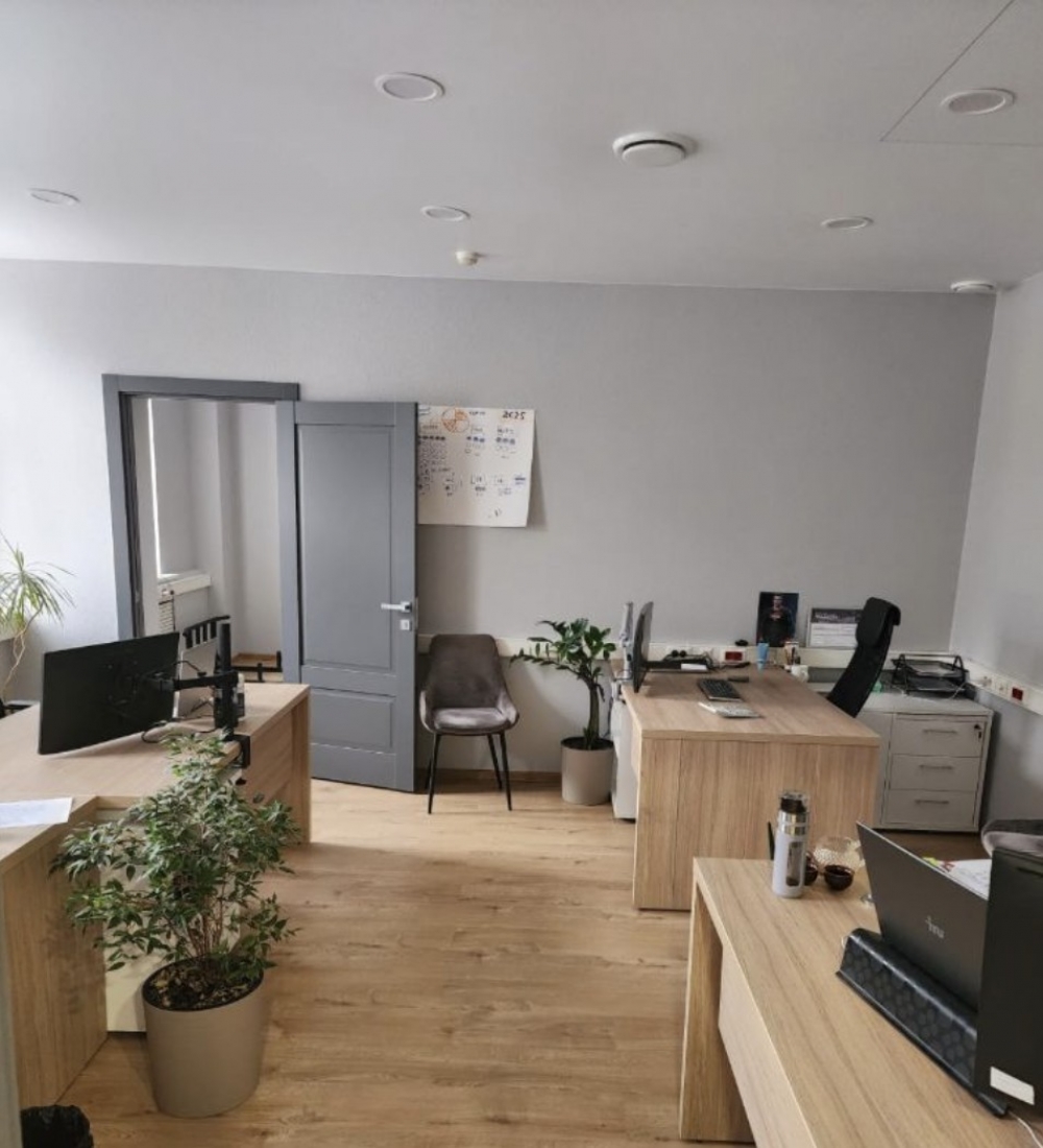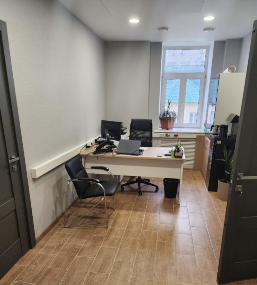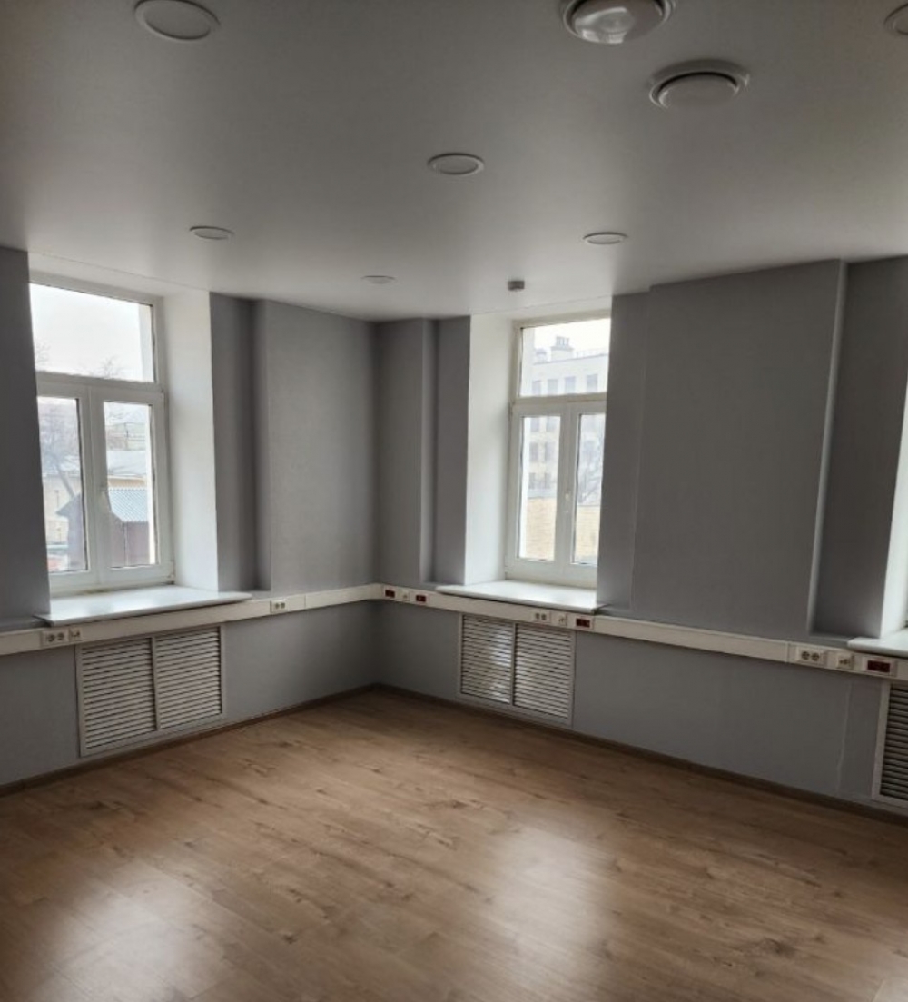 Общая площадь 360м2, кабинетная планировка (13 кабинетов и 2 с/у), ремонт за выездом арендатора. Офис сдается без мебели. В здании приточно-вытяжная вентиляция и наземная парковка.
