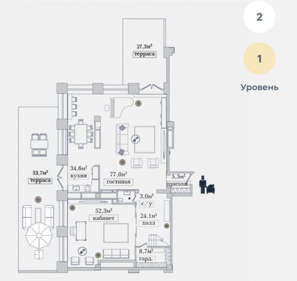 Предлагаются в продажу апартаменты без отделки, могут быть использованы как офис. На планировке изображено типовое размещение мебели. На фото представлена возможная отделка в случае использования под апартаменты.