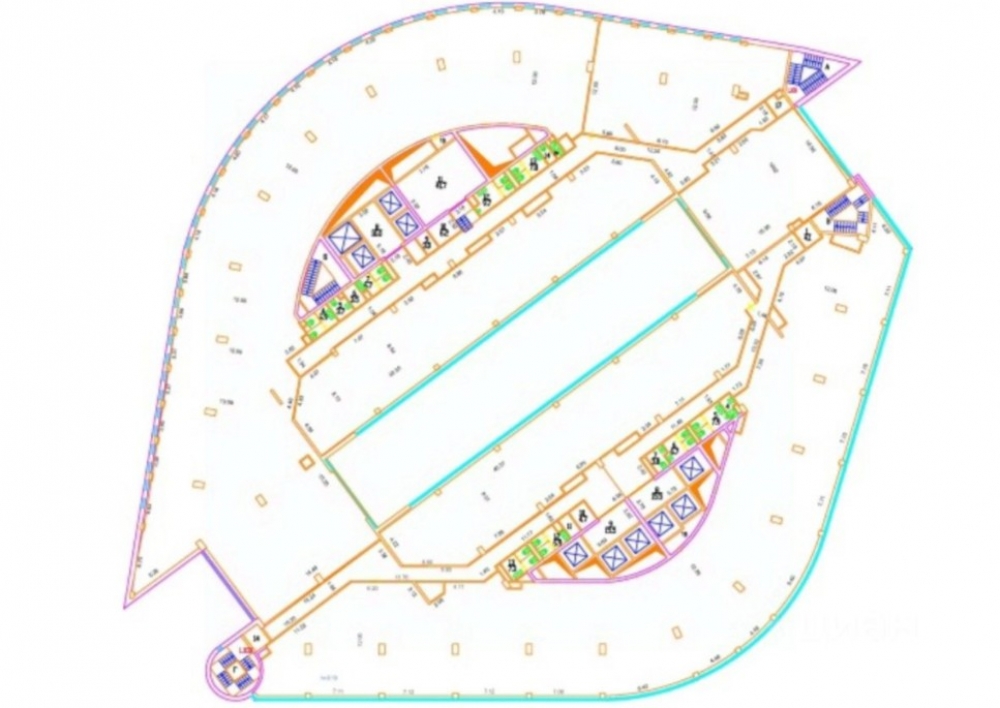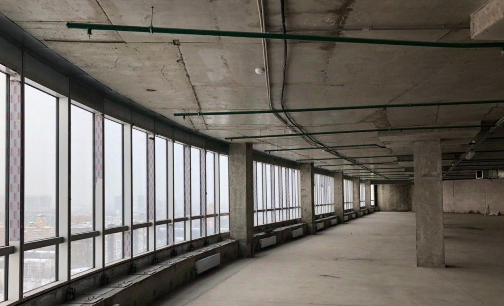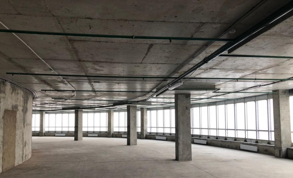 Блок А. Офис занимает весь 22-й этаж, свободная планировка, без отделки. Установлена приточная вентиляция. Потолки 4,2м.