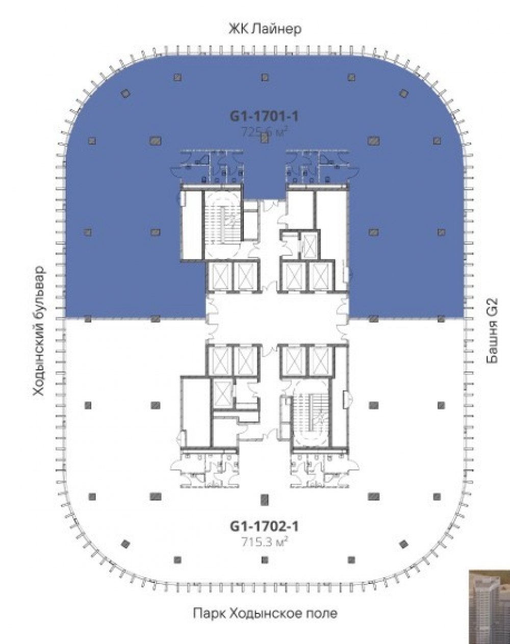 Башня G3 – Чистая и стройная структура здания, которая имеет тесную визуальную связь с городом, формирует четкую границу прилегающего парка, буквально обрамляя сложившийся зеленый ландшафт.