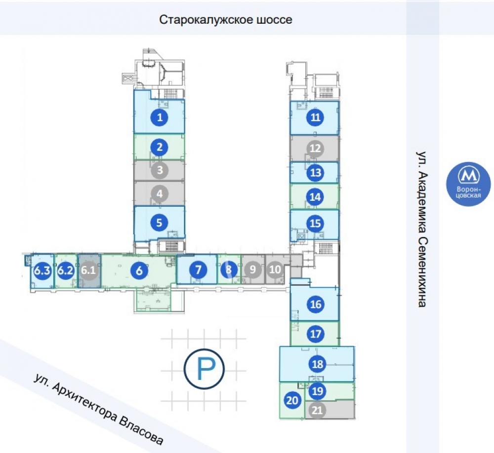 Бизнес-центр расположен в р-не Коньково (ЮЗАО) в 30 м от входа в метро «Воронцовская»