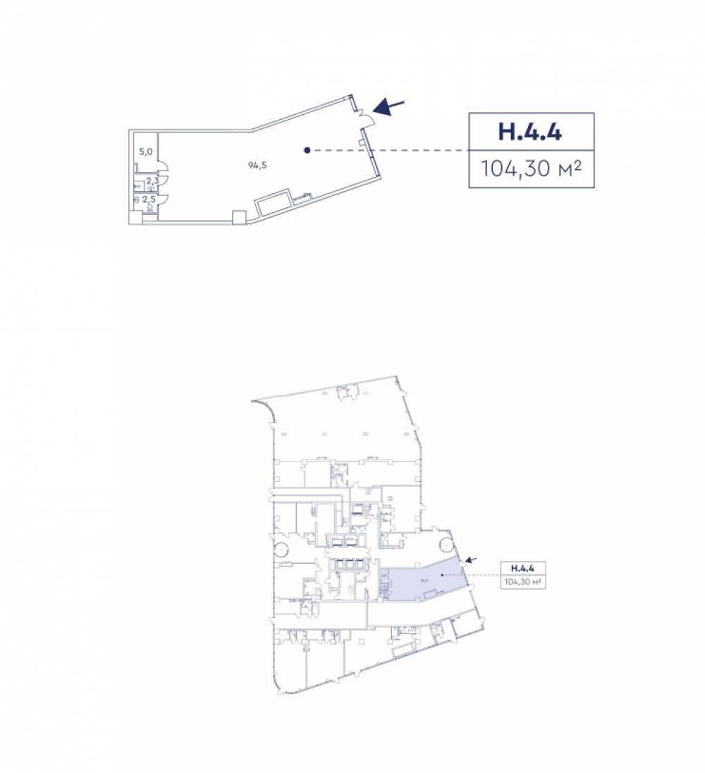 Продается торговое помещение 104,30 кв.м. в МФК бизнес-класса «Мираполис», на первой линии проспекта Мира. Продажа от Застройщика, без комиссии. Ввод объекта в эксплуатацию запланирован на IV квартал 2026 г. Комплекс расположен рядом с ТПУ Ростокино, на данном участке сосредоточены потоки транспорта и пешеходов, пересадка с МЦД на МЦК. Высокий пешеходный трафик. Располагается на 1 этаже в стилобатной части комплекса. Отдельный вход с уровня земли . Витражное остекление. Удобная прямоугольная планировка с большим залом. Выделенная мощность 0,3 квт. Высота потолков до 5 м.