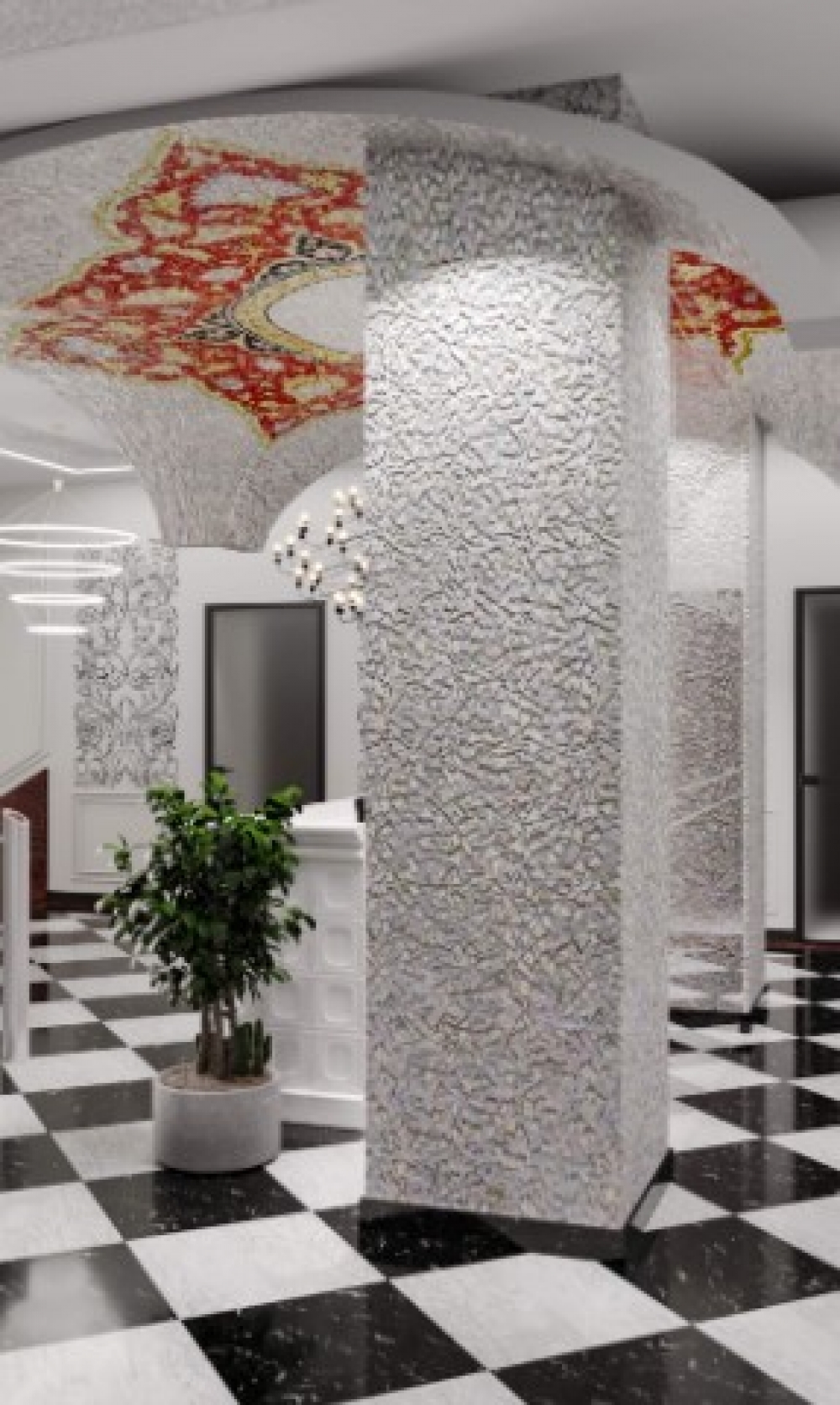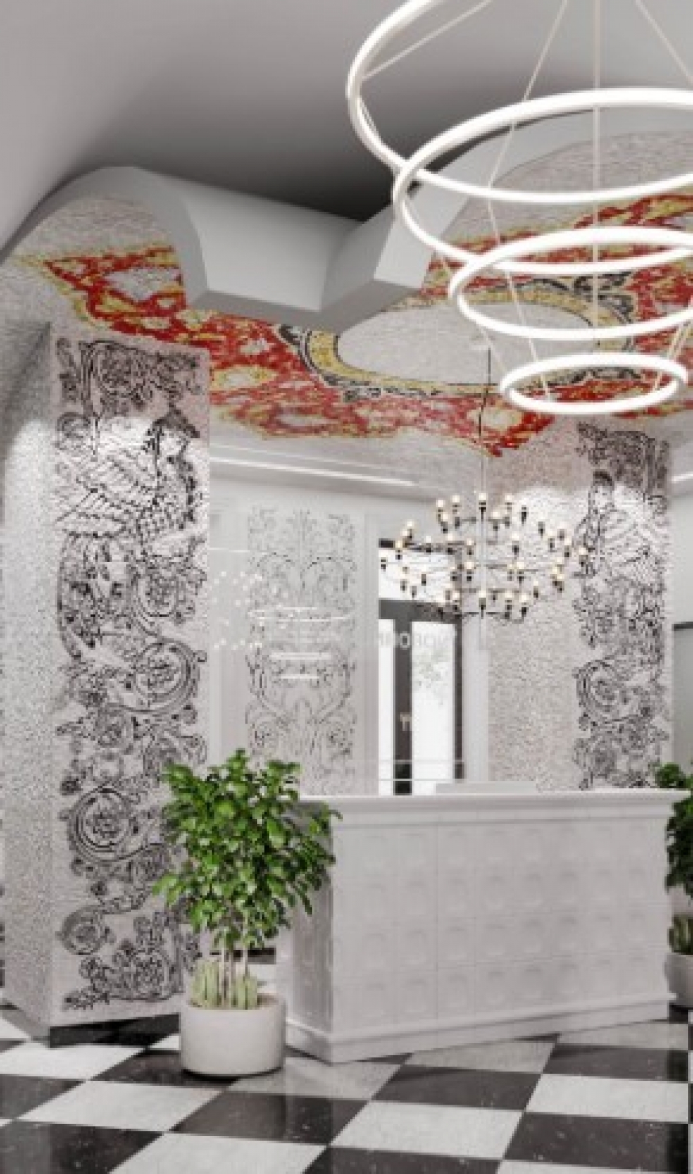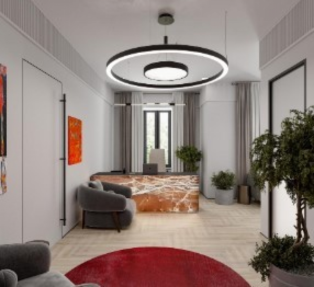— Дизайн-концепт предусматривает оформление в русском стиле в современном прочтении. Будут использоваться характерные для этого стиля яркие цвета, растительные орнаменты и аутентичные узоры. Есть помещения с балконами и террасой.
