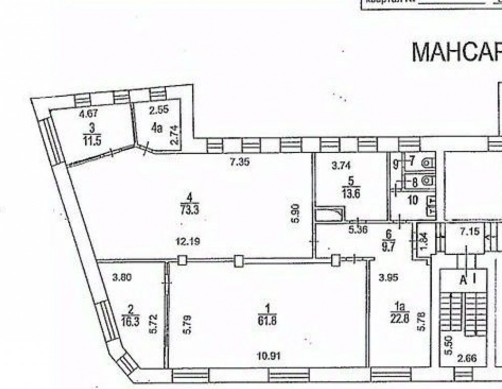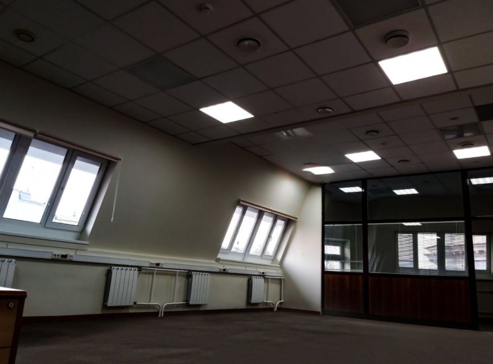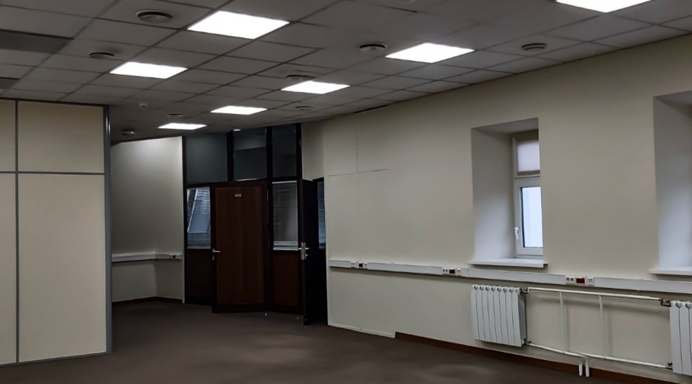 Четвертый (мансардный) этаж без лифта, стандартный офисный ремонт за выездом арендатора, смешанная планировка, с/у в блоке, приточно-вытяжная вентиляция, кондиционирование.