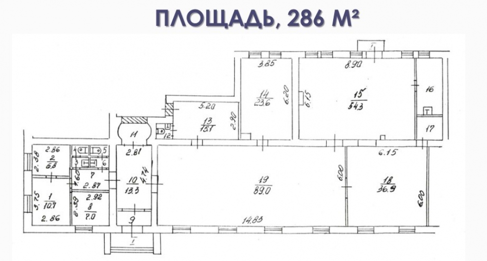 Общая площадь помещения 286 м2,