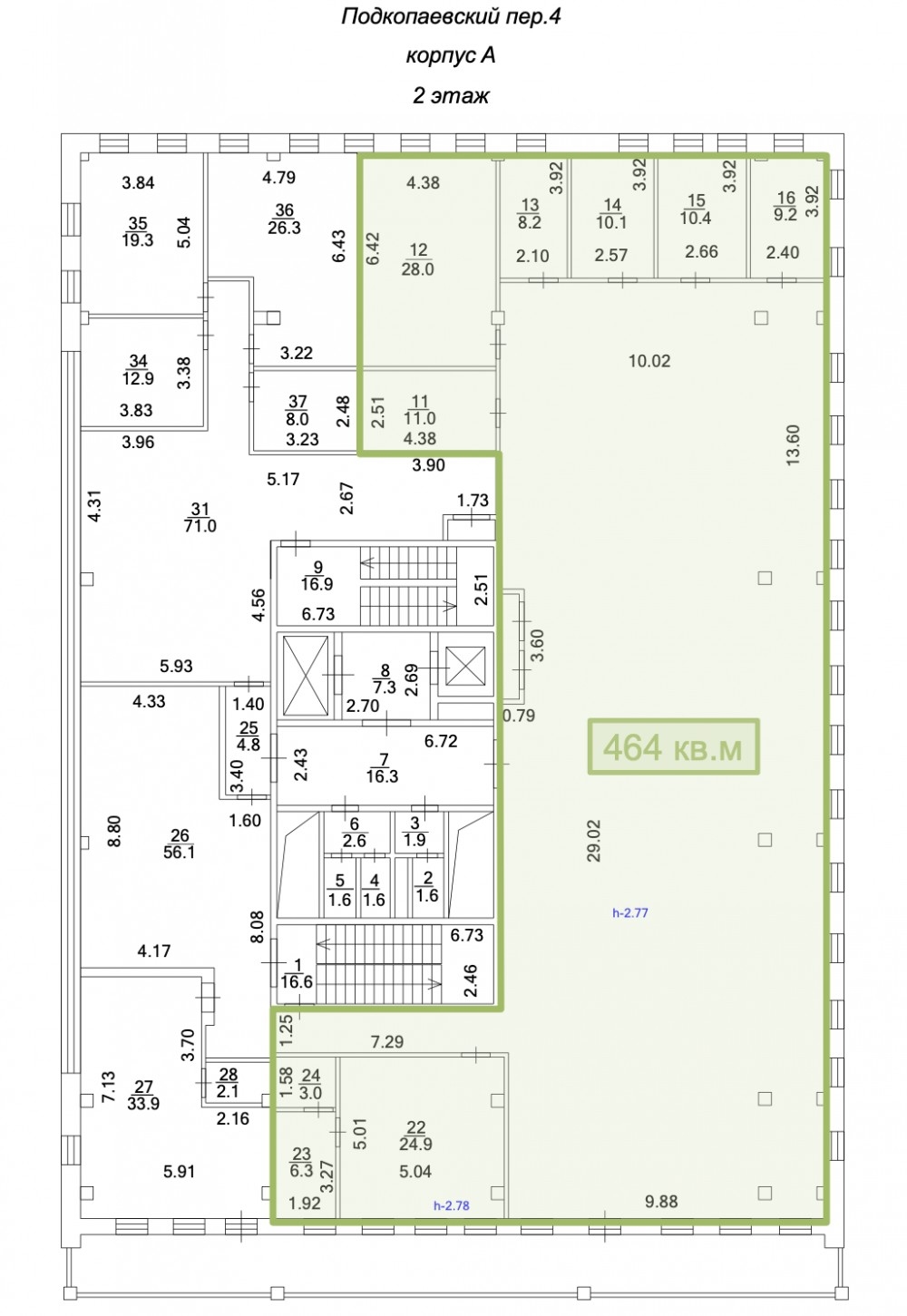 Офис площадью 463,84м2 расположен на втором эатже корпуса А, смешанная планировка, офисная отделка. В помещении приточно-вытяжная вентиляция, сплит-системы кондиционирования.