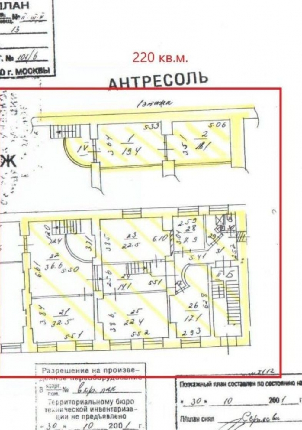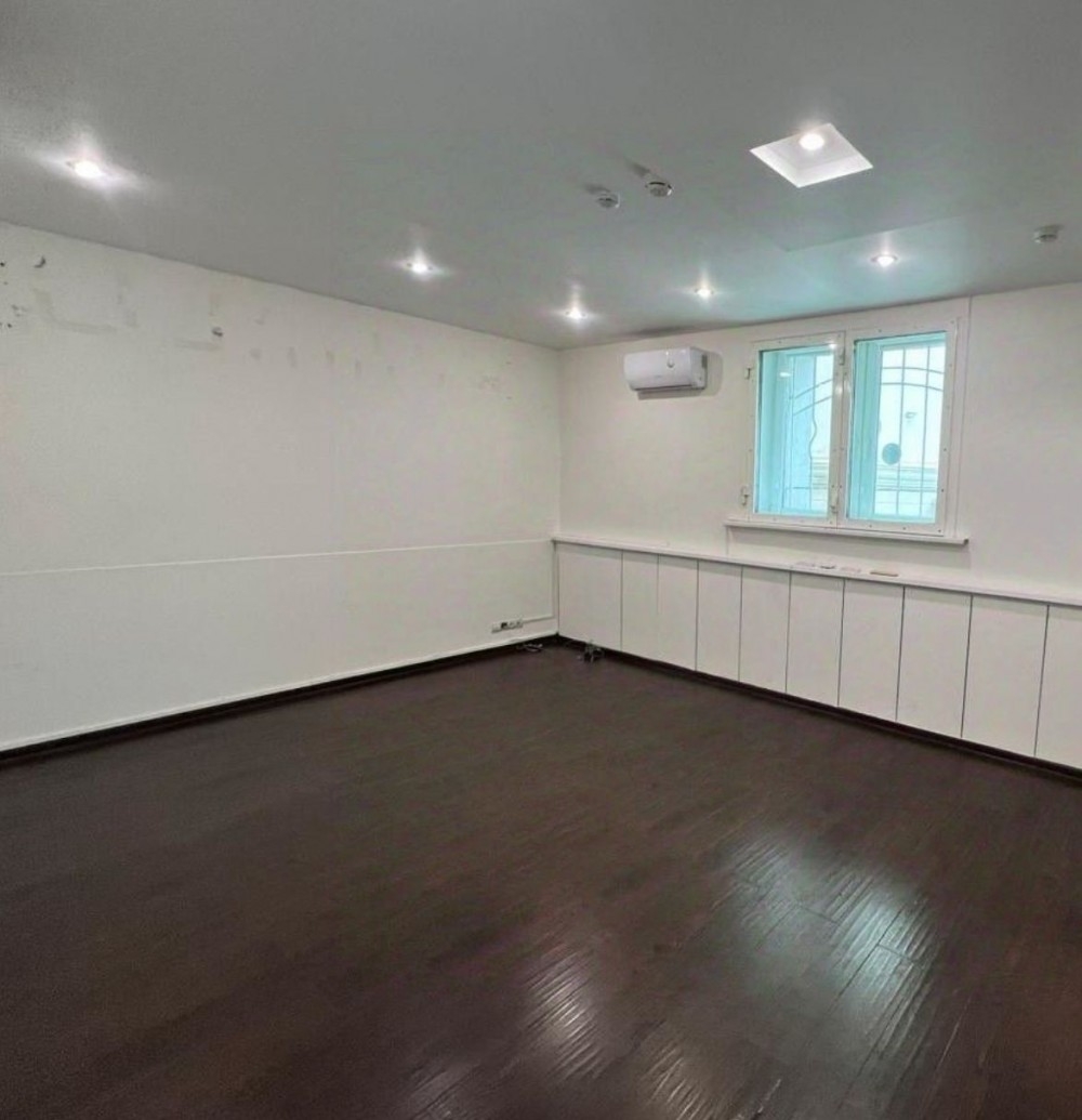 Первый этаж плюс комната с сейфом в подвале, кабинетная планировка, системы вентиляции и кондиционирования. Есть стихийная наземная парковка. В ставку включена эксплуатация.