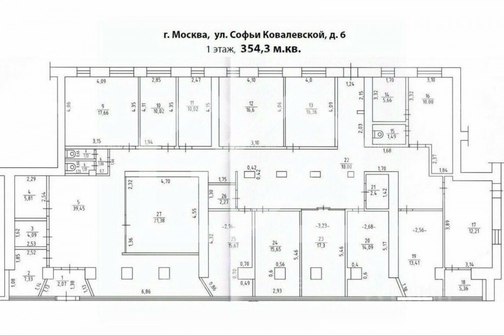 1 этаж 9-ти этажного жилого дома, общей площадью 354 м². Три входа: с фасада, со двора и зона разгрузки с торца. Кабинетная планировка, перегородки не несущие (гипсокартон). Выделенная электрическая мощность 30 кВт (можно поднять до 60 кВт). Городские коммуникации. Высота потолка 3,4 метра. Витринное остекление по фасаду.