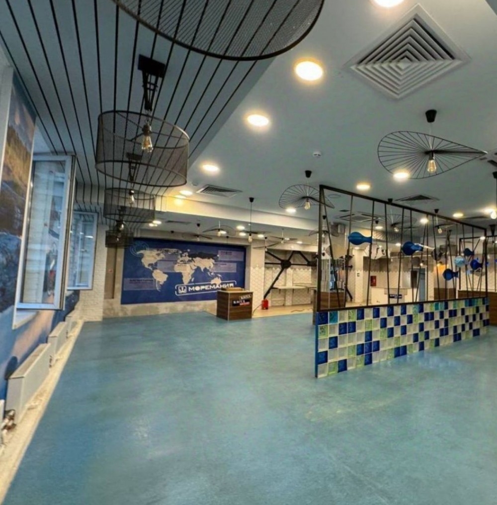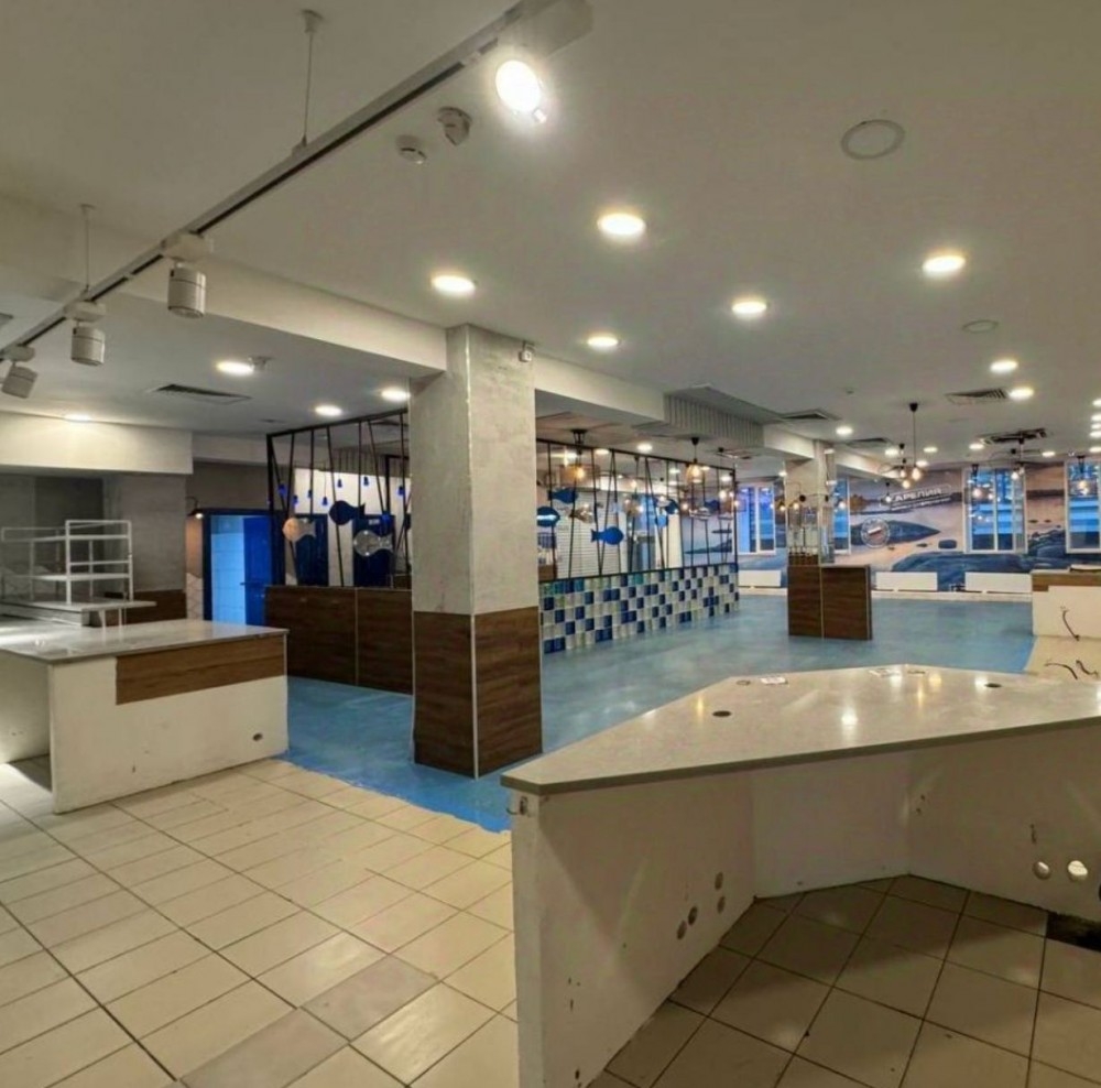Первый этаж бизнес-центра класса В, отдельный вход с улицы. Зальная планировка, ремонт за выездом арендатора («Моремания»), витринные окна, потолки 3,20 м и выделенная мощность 100 кВт, есть вытяжка.