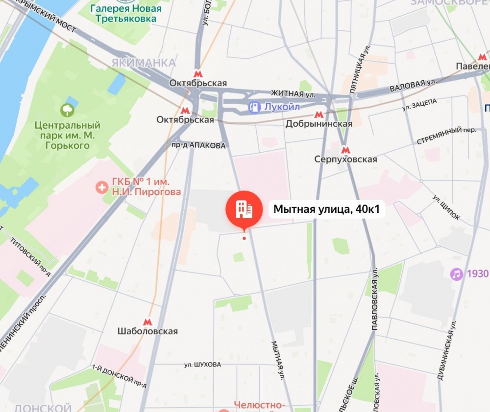Локация — центральный округ, район Якиманка, в непосредственной близости от четырёх станций метро (Октябрьская, Добрынинская, Серпуховская, Шаболовская). До ближайшей станции метро — 700 м.