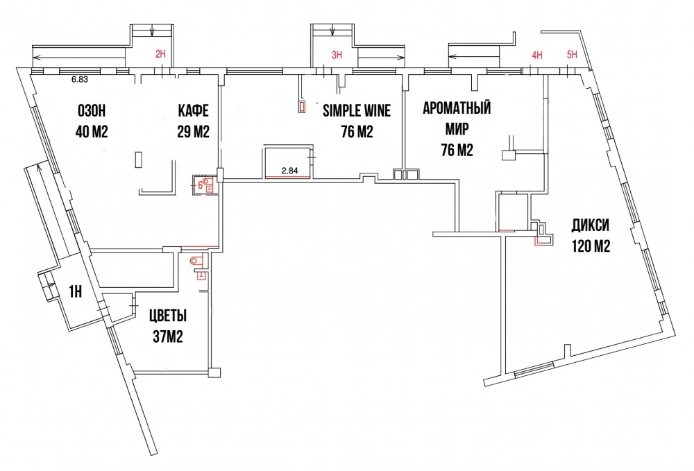 Отделка выполнена за счёт арендаторов в рамках их деятельности.