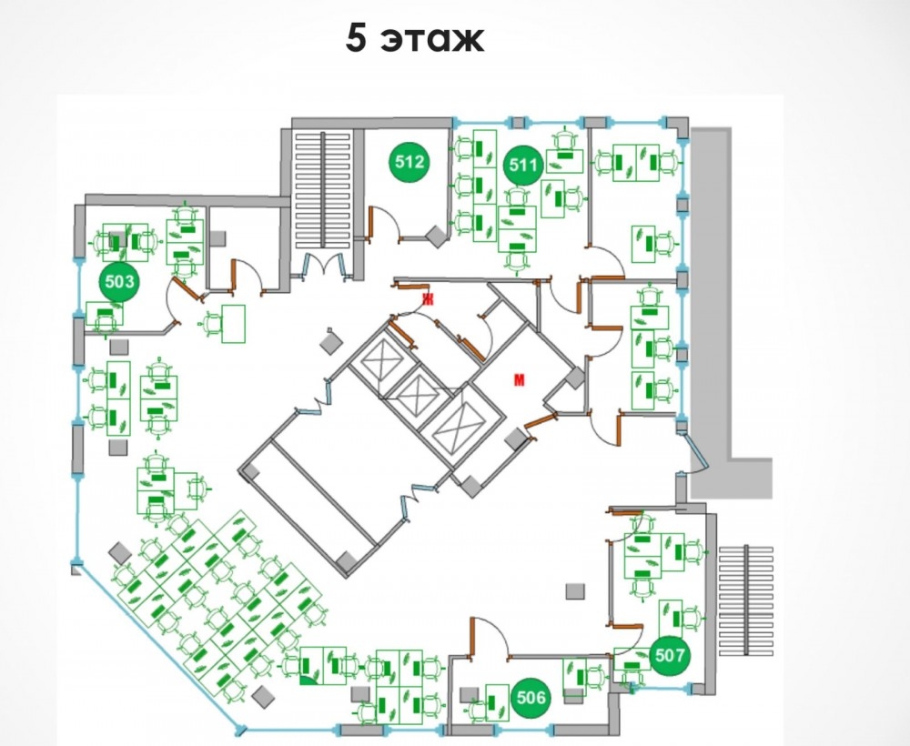 Офис занимает площадь с 2 по 6 этаж. Арендуемая площадь - 2855,15м2м2. Ремонт за выездом арендатора. В здании приточно-вытяжная вентиляция, центральное кондиционирование.