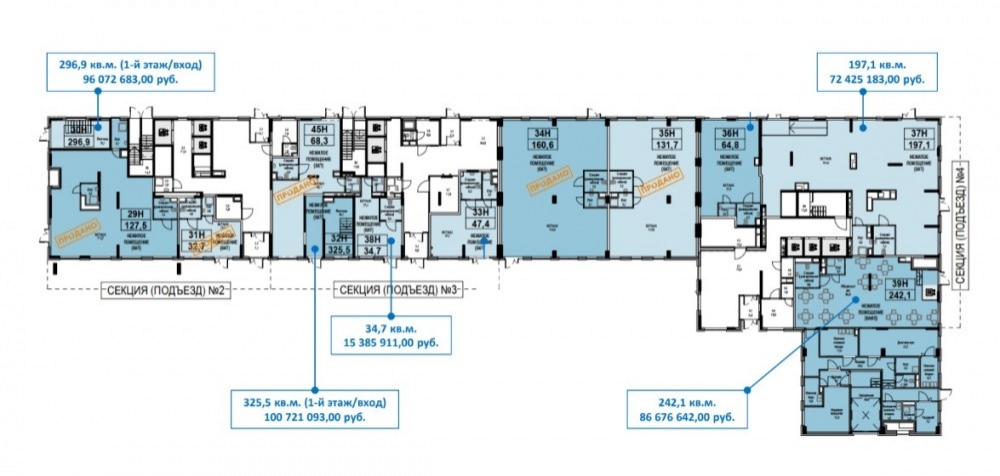 - Состояние коммерческих помещений на момент передачи: без отделки в бетоне;