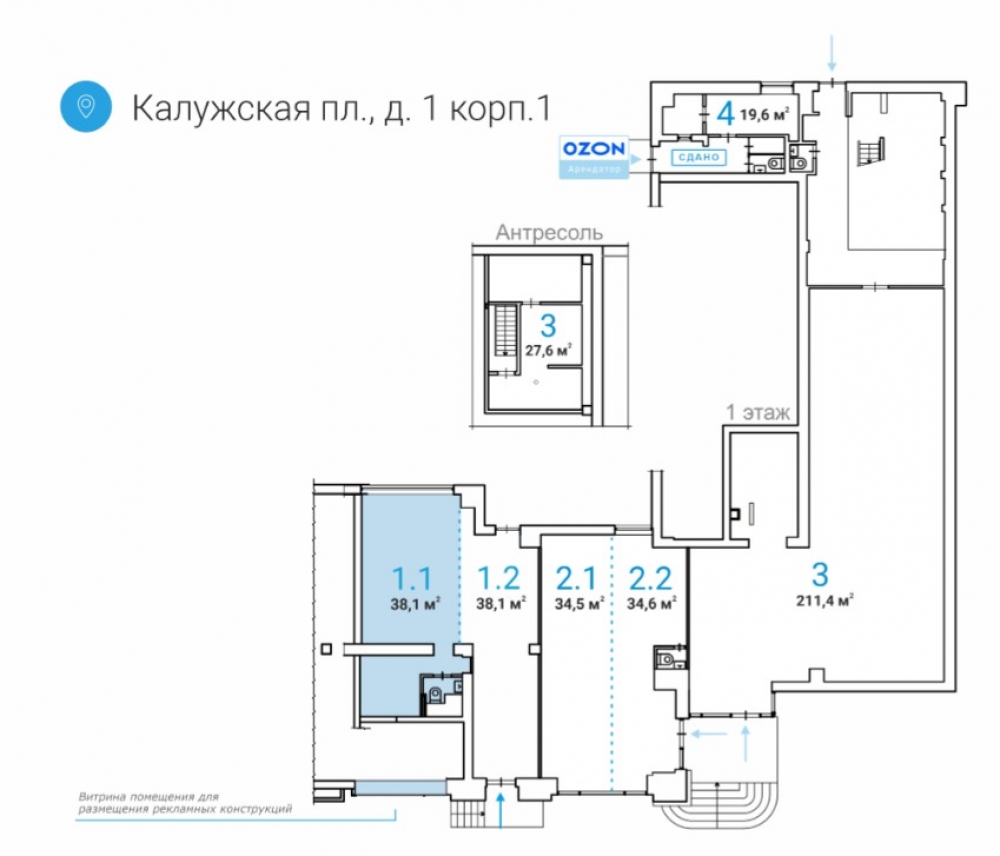 Предлагается в аренду помещение на Калужской площади, ЦАО, г. Москва. Шаговая доступность от ст. метро «Октябрьская» — 1 минута пешком. Отличная пешеходная и транспортная доступность. Помещение на 1 этаже общей площадью 38,10 м2. Подготовлено под чистовую отделку. Помещение расположено в крупном сложившемся жилом районе с высокой плотностью застройки и развитой инфраструктурой. В окружении находятся жилые комплексы «Cult», «Созвездие», большое количество бизнес-центров, Национальный исследовательский технологический университет МИСИС, Российская государственная детская библиотека.