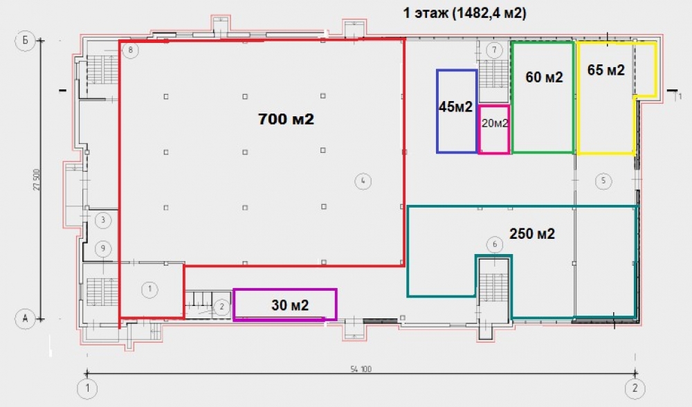 Помещение под супермаркет 700 м2 на 1-м этаже МФЦ в первой линии домов с отдельным входом с улицы, в 15 минутах пешком от м. "Бульвар Адмирала Ушакова", "Улица Горчакова" Помещения расположено в 3-х этажном здании 3458,8 м2 в центре крупного жилого массива с многоквартирными домами района Южного Бутово. Первая линия домов, большие витрины по периметру здания. Рекламные площади по фасаду здания. Зальная планировка. Высокие потолки от 5 до 9 м. Здание монолитное, современное, все инженерные системы централизованные, гвс, хвс, отопление, канализация, су. Эл-во 150 кВт. Парковка 80 машино-мест вдоль здания. Земельный участок 4100 кв.м. Удачное месторасположение, удобный заезд и выезд к зданию. На 1-ом этаже 10 отдельных входов с улицы, удобная зона для разгрузки-погрузки арендаторов. Общая площадь 1-го этажа 1482,4 м2. Долгосрочная аренда