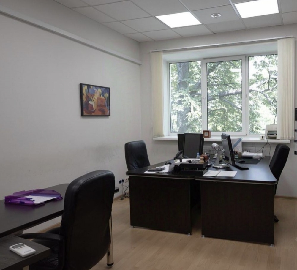 Офис расположен на третьем этаже, без лифта, площадь помещения 360,6м2, кабинетная планировка, стандартная офисная отделка. В здании приточно-вытяжная вентиляция, сплит-системы кондиционирования, наземная парковка.