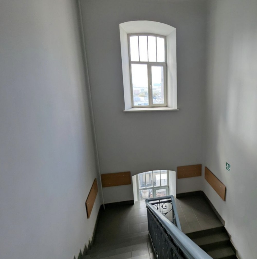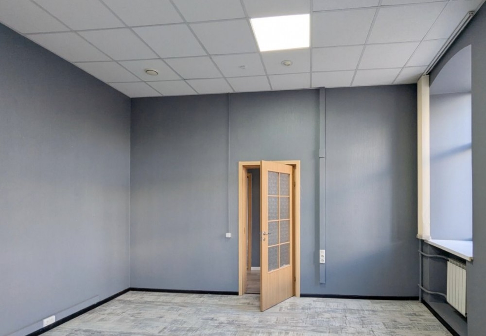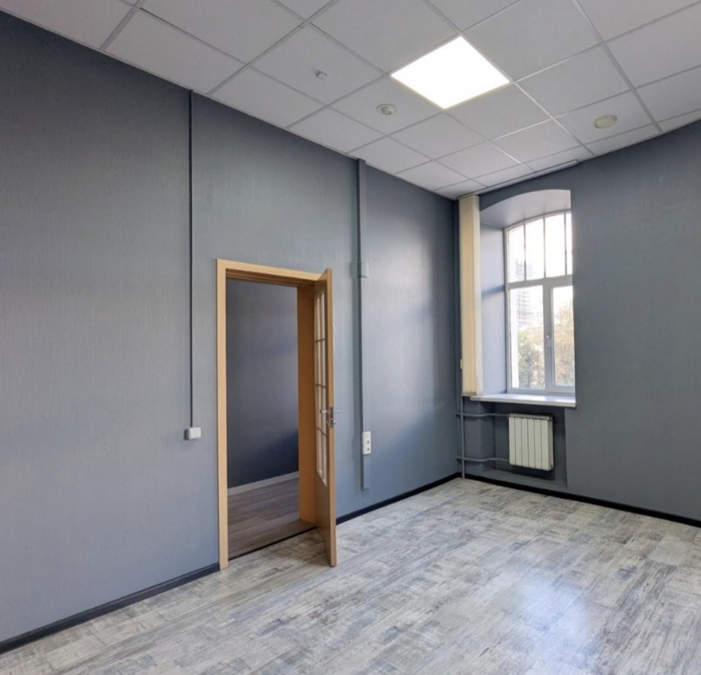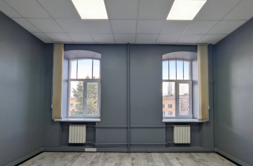 Четвертый этаж, много окон, стандартный офисный ремонт, кабинетная планировка, свой с/у, приточно-вытяжная вентиляция, кондиционирование, высокие потолки.