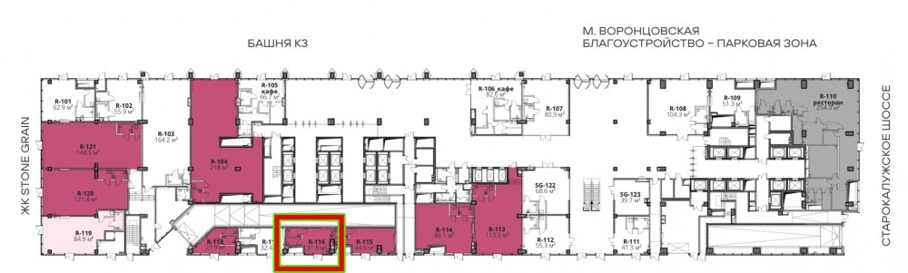 STONE Калужская — офисный квартал на выходе из м. «Калужская» с высоким инвестиционным потенциалом. Три офисные башни с торговой галереей расположены в исторически сложившемся деловом коридоре с высокой транспортной доступностью. Вблизи офисных корпусов будет благоустроена городская площадь с озеленением и зонами отдыха. В реализации — от небольших офисов до офисного здания целиком, а так же ритейл с отдельным входом на первом этаже.